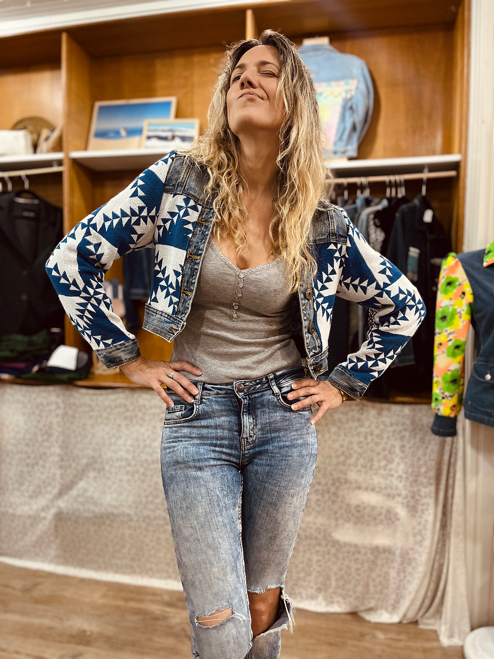 Les vestes "Cocoon" sont créées à partir de vestes en jean décousue et rassemblée à l'aide de plaids, ou autres tissus. Ce sont toutes des pièces uniques !!